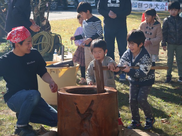 みんな一緒に、力を合わせてお餅をつこう!昔ながらの臼と杵で ヨイショー! ソーレ、ヨイショー!!芋煮・焚き火とつきたてのお餅で寒い冬を吹き飛ばそう♪先着受付ですので、ご希望の方はお早めに!